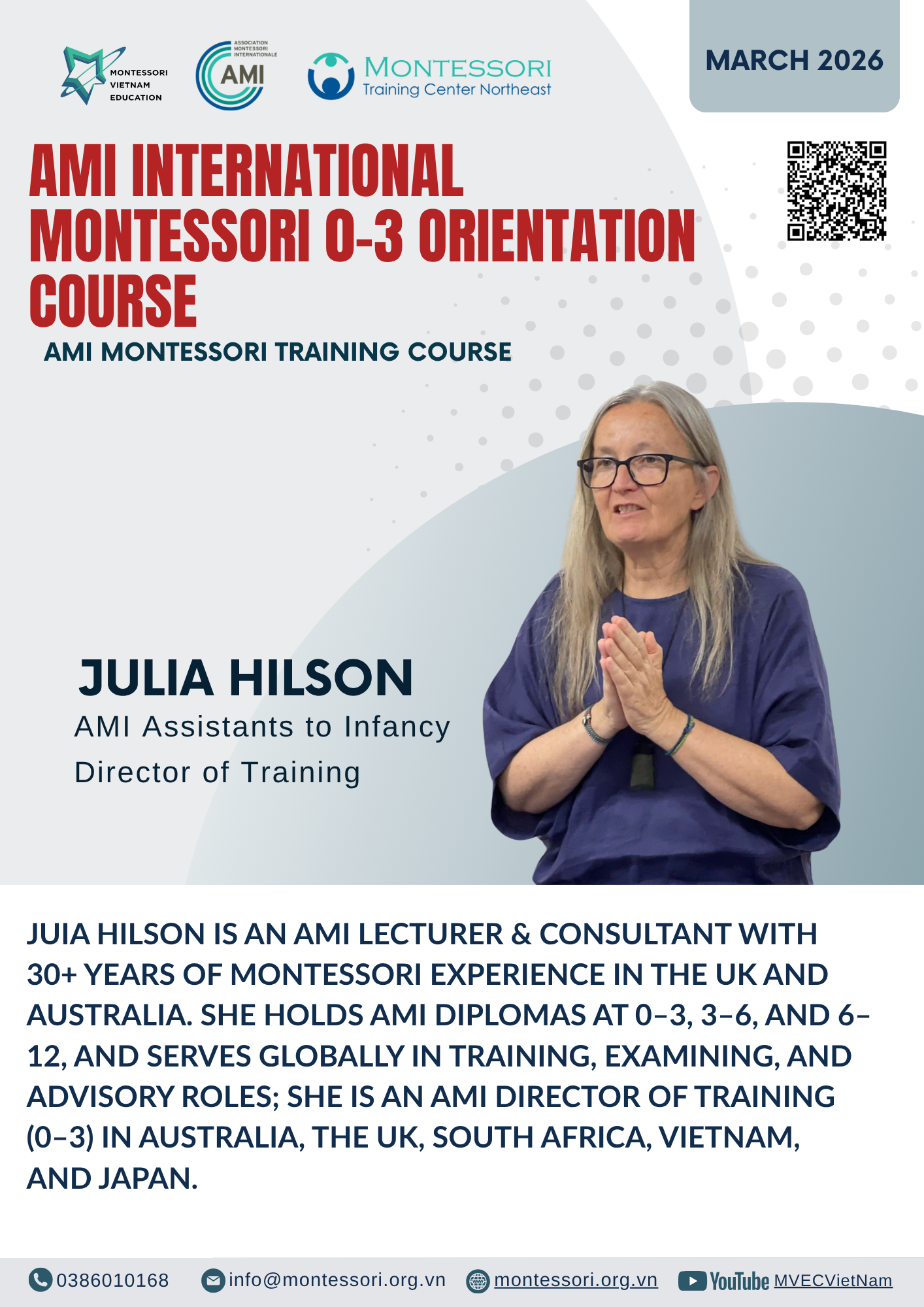 The AMI Orientation Course 0-3 delivers core values and practical applications, empowering you to not only gain knowledge but also apply it effectively and meaningfully: